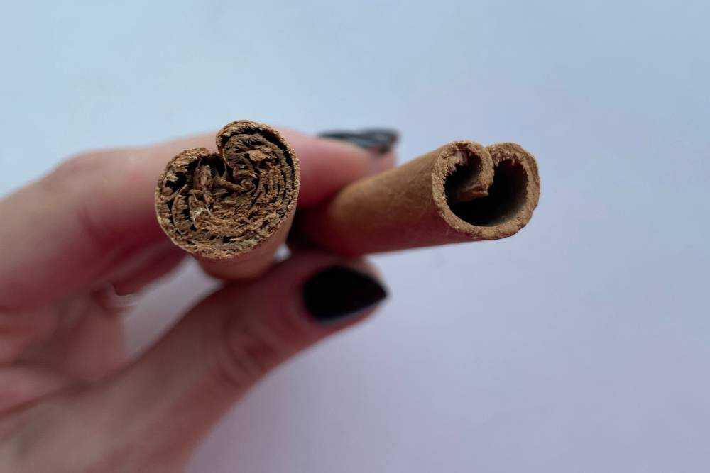 Чтобы его распознать — обратите внимание на толщину и завитки коры. Палочки коричника часто скручены в одном направлении, а настоящая корица всегда характерно закручена с двух сторон