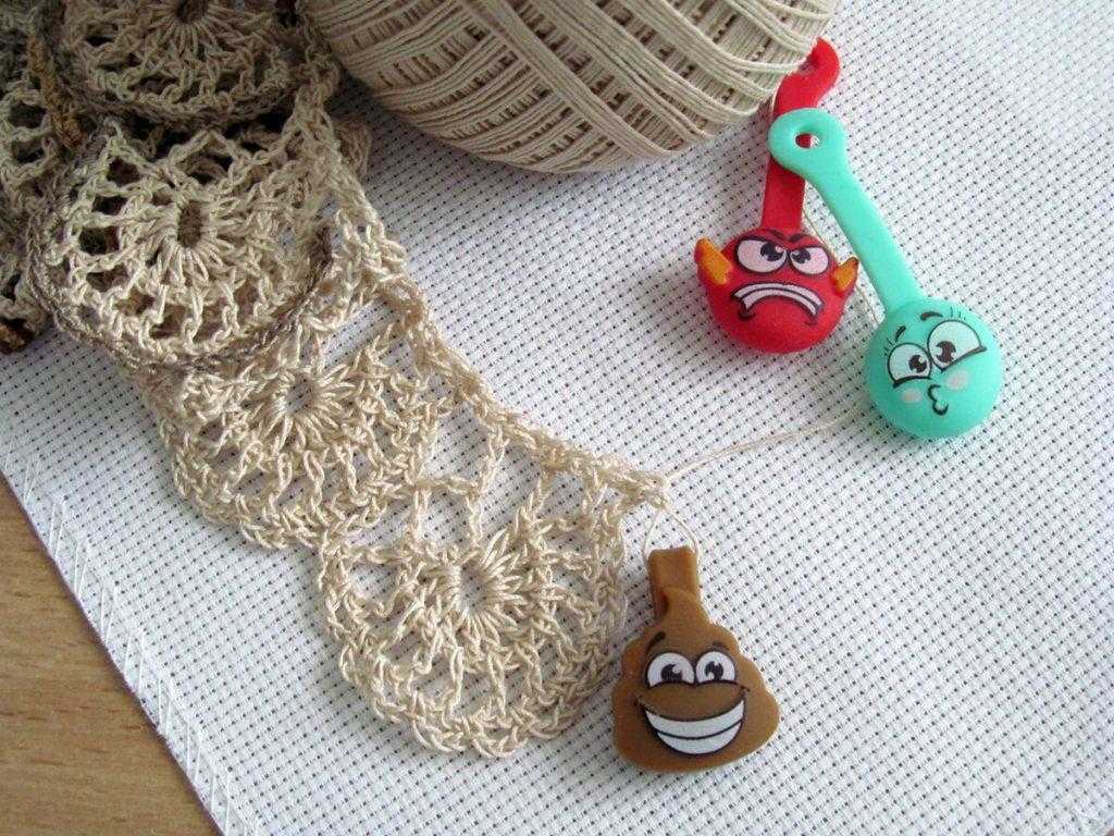 Вот тут рукодельница делится своим способом использования игрушек. Что может лучше удержать петлю, как не Скрепыш? Этих персонажей вполне можно использовать вместо скучных булавок для рукоделия.