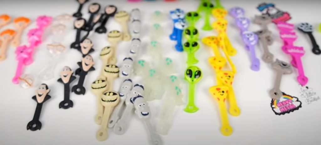 Силиконовые забавные игрушки можно закреплять друг с другом, из этого получится браслет. Чтобы их соединить, необходимо круглый выступ сомкнуть с двух сторон и поместить в отверстие.