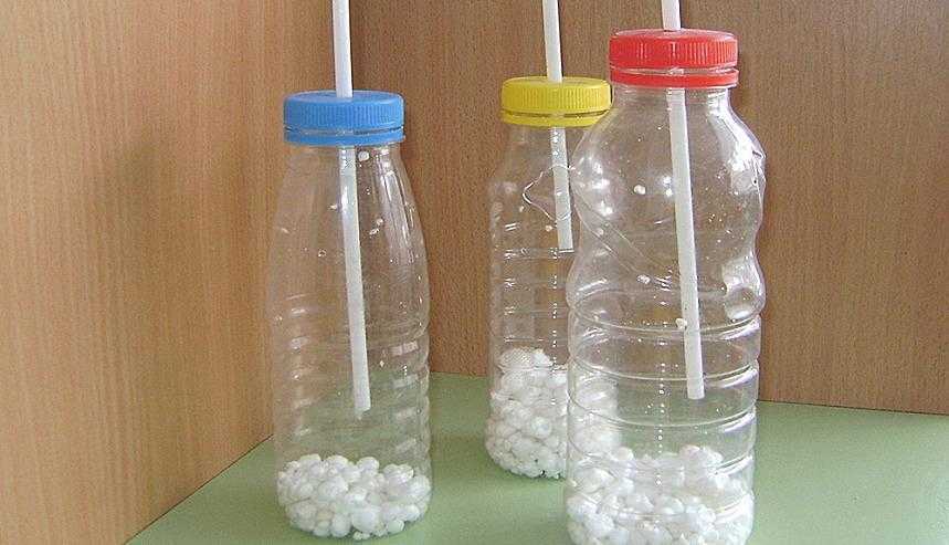 Либо наоборот. Берете крышку от пластиковой бутылки и делаете в ней отверстие под коктейльную соломку. Вставляете трубочку в крышку и герметично закрепляете ее там. В пластиковую бутылку кидаете пенопластовые шарики. Закрываете крышку и с помощью своего дыхания поддерживаете шарики на весу, между дном бутылке и ее верхом.