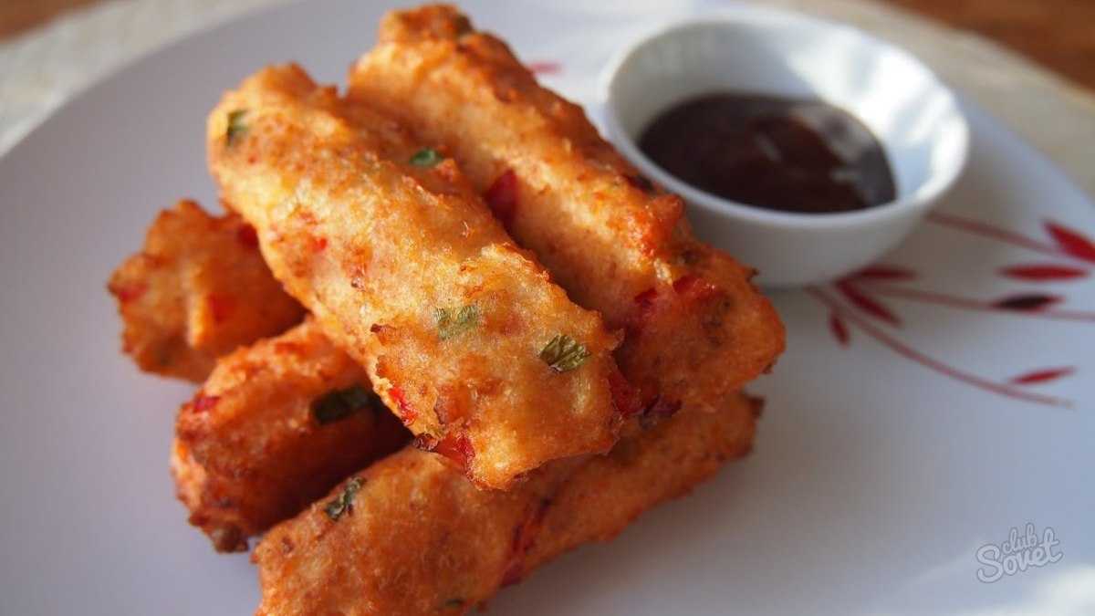 - Обжарить готовые рыбные палочки на растительном масле до румяного цвета.
