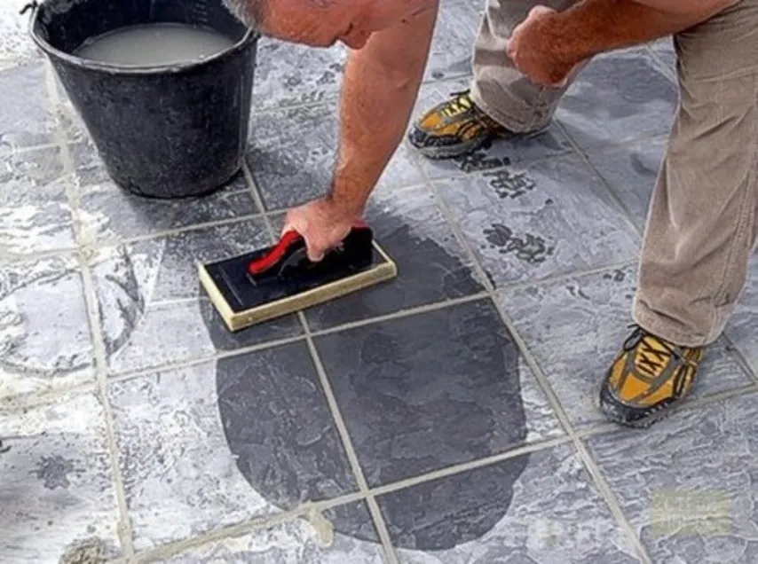 Перед началом работ нужно подмести плитку и смыть с нее загрязнения, которые легко удаляются водой: