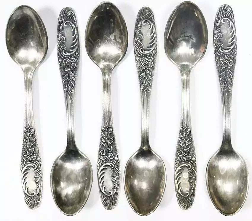 - Наличие ржавчины. Чистые серебряные изделия не подвергаются коррозии. Столовое серебро с проявляющимися ржавыми пятнами — ненастоящее.