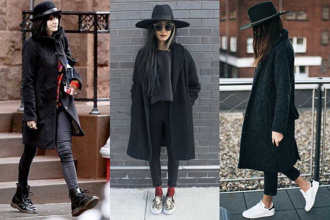 Универсальный и стильный вариант – носить черное пальто со шляпой. Такой головной убор подходит женщинам всех возрастов и вносит в образ долю элегантности и шарма. Поля могут быть большими и не очень, нужно отталкиваться от формы лица.