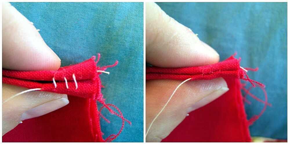 Выполняйте шов, как показано на фото или на схеме из лайфхака выше. В конце аккуратно закрепите нитку.