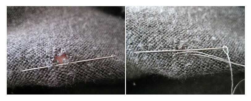 3. Как зашить небольшую дырку на вязаных трикотажных вещах: мастер-класс