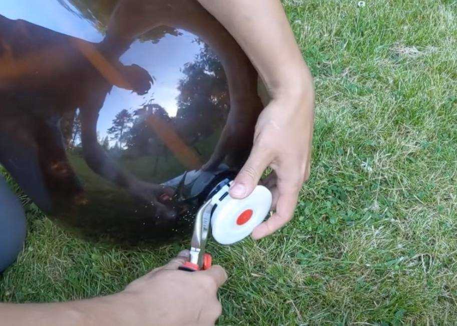 - Вырежьте отверстие в дне бутылки равное диаметру крышки.