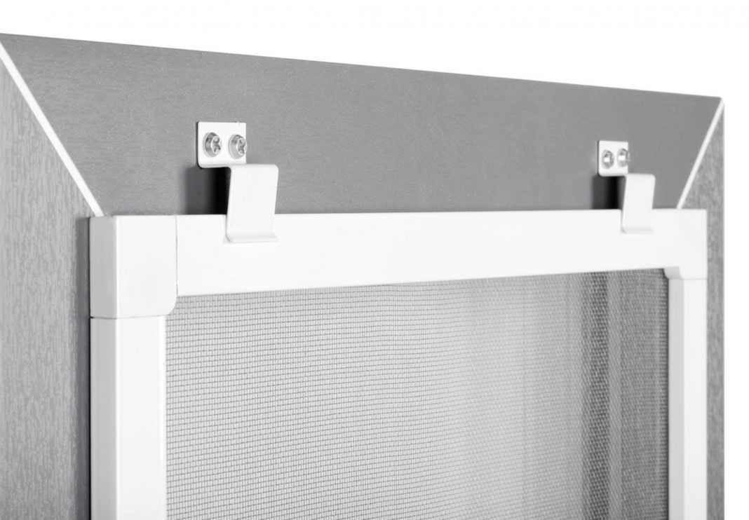 Крючки крепятся к раме саморезами или шурупами. Их следует ослабить, развернуть крючки внутрь и аккуратно вынуть сетку из оконного проема.