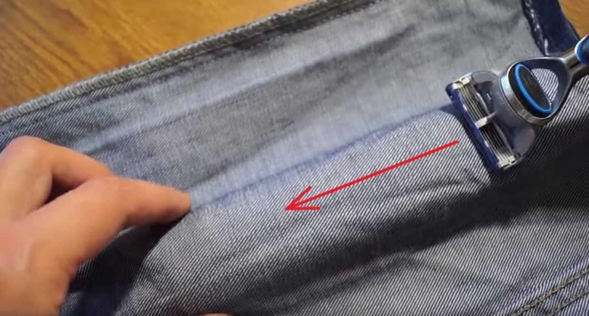 - Бритва двигается по ткани в направлении, противоположному классическому бритью, при этом джинсы не портится.
