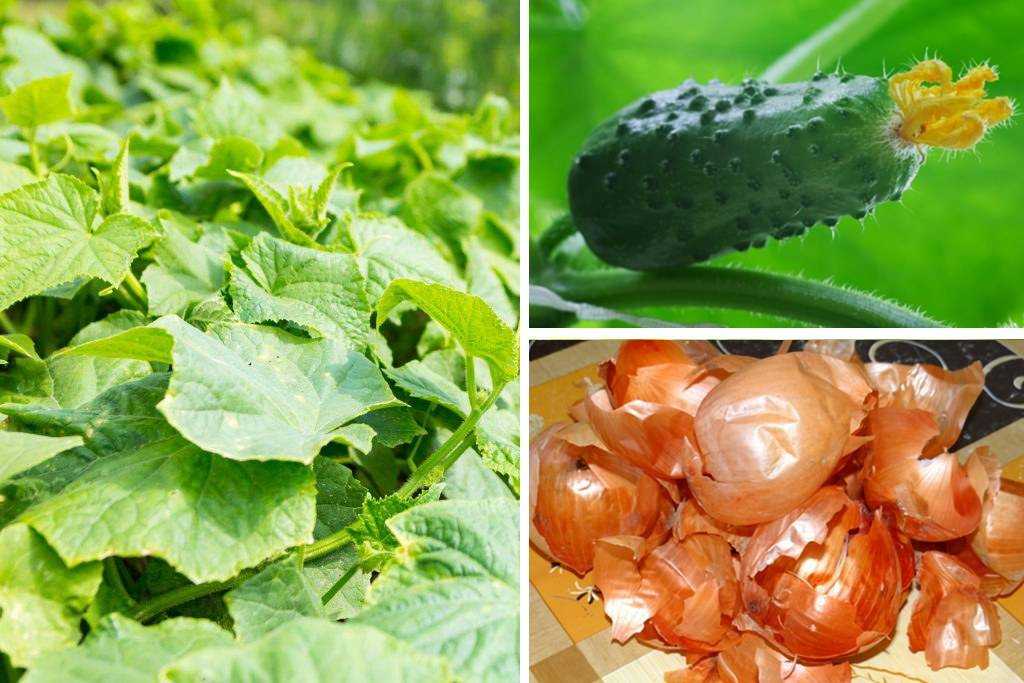 При выращивании огурцов в теплице с целью защиты от насекомых рядом с грядкой ставят банку с залитой водой шелухой. Запах лука отпугивает вредителей.
