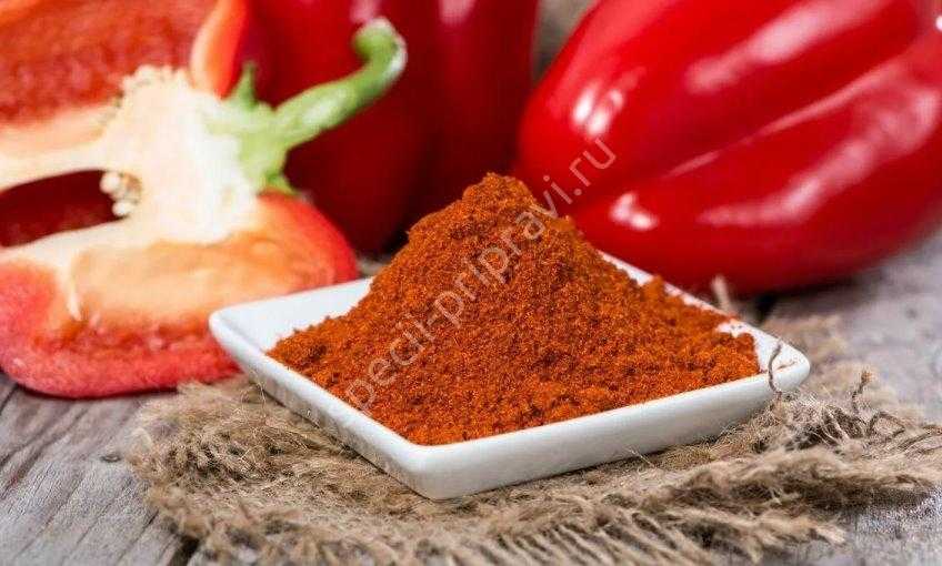 Паприка. Дает ненавязчивый перечный аромат и красивый цвет. Его используют вместе с томатами и томатной пастой.