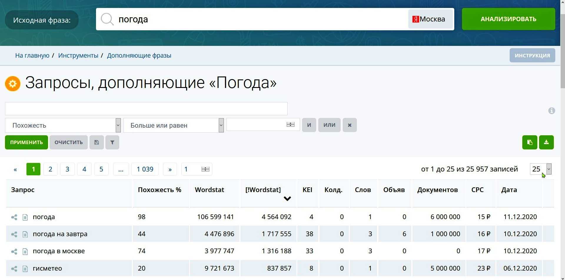 Использовал для этого известный сервис для SEO (продвижение в поисковой выдаче), в частности, очень помог сервис Кейсо:
