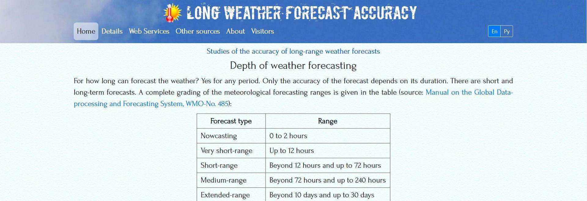 Вот ещё сайт, посвящённый исследованию точности прогноза погоды, в частности, точности долгосрочных прогнозов: