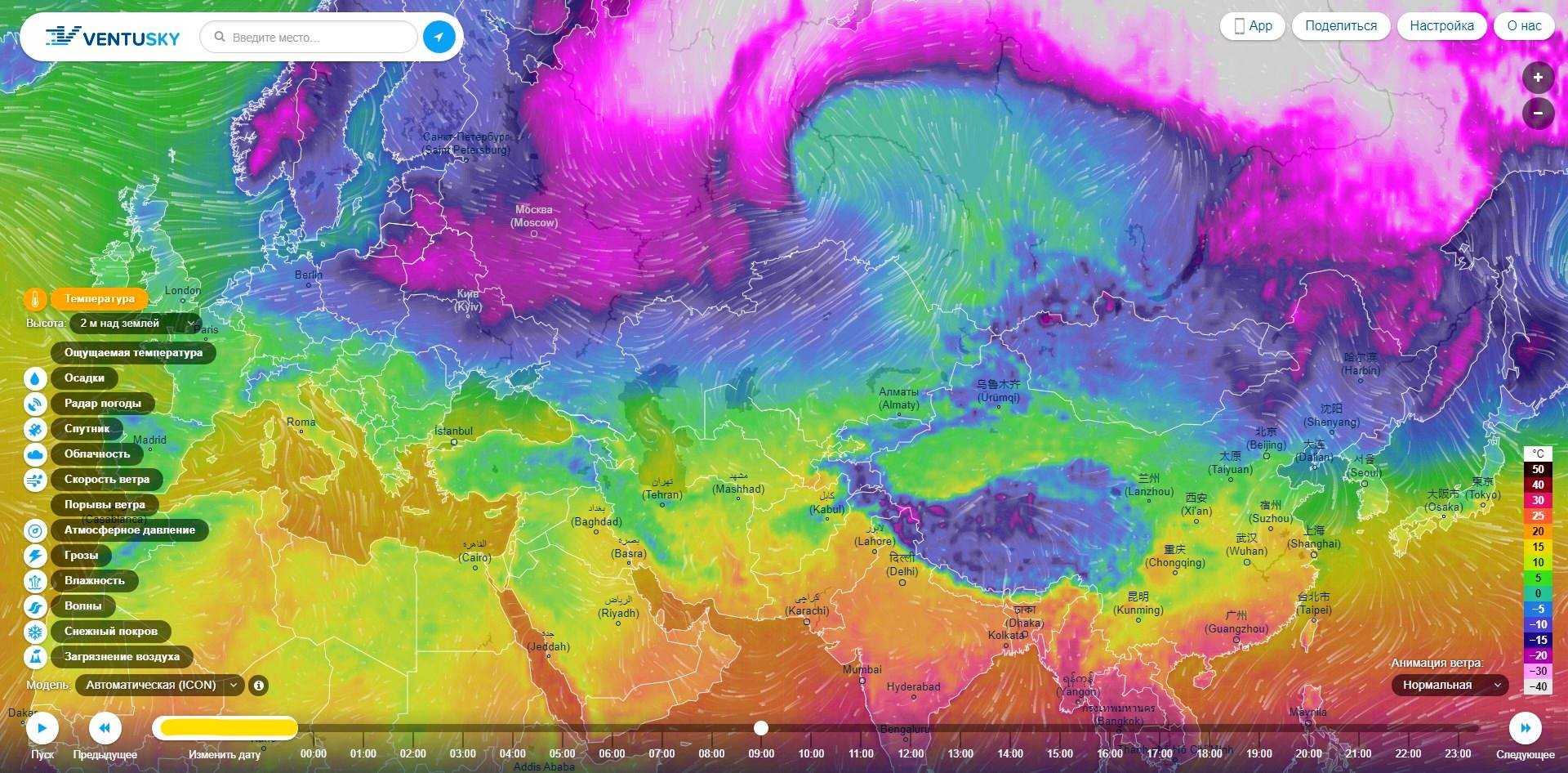 Этот сайт привлёк внимание своей интерактивностью. Можно в реальном времени увидеть: температуру, осадки, радар погоды, облачность, скорость ветра, атмосферное давление, грозы, влажность, волны, толщину снежного покрова, даже загрязнение