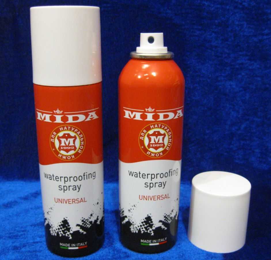 Влагоотталкивающий спрей, который позволяет создать на поверхности обуви защитную пленку, что предотвращает ее промокание. Использовать это средство надо регулярно, особенно при эксплуатации обуви в сырую погоду. Оно отталкивает не только влагу, но также пыль и грязь.