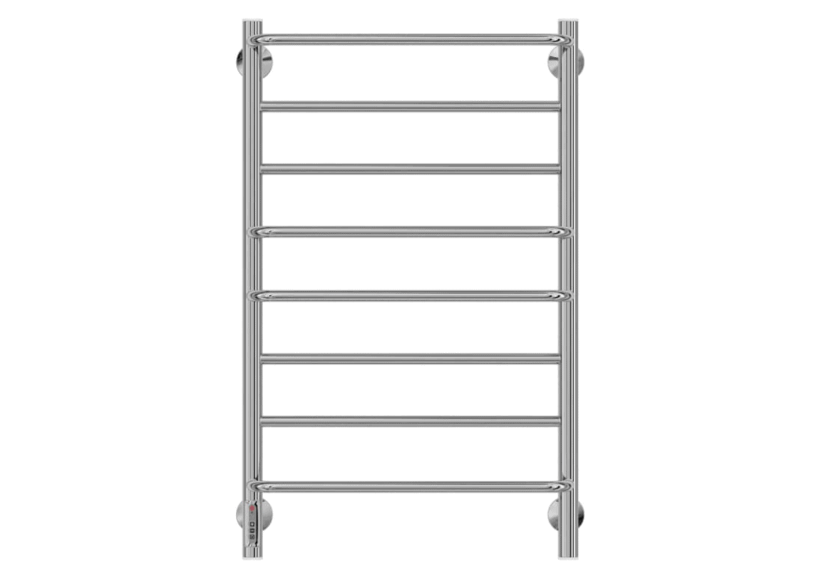 Лесенка обладает восьмью секциями со встроенным диммером, имеющим 4 уровня нагрева. Прибор подключается двумя способами: скрытым электрическим соединением или электропроводом с вилкой. Конструкция подходит для ванной любых габаритов!