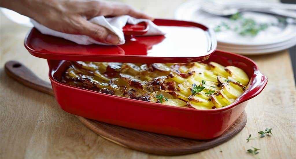 Также приобретаемая посуда должна иметь достаточно прочные стенки, чтобы окружающая высокая температура не оказывала на нее никакого отрицательного воздействия, а сама емкость равномерно отдавала запекаемым продуктам тепло, сохраняя его после выключения нагрева некоторое время.