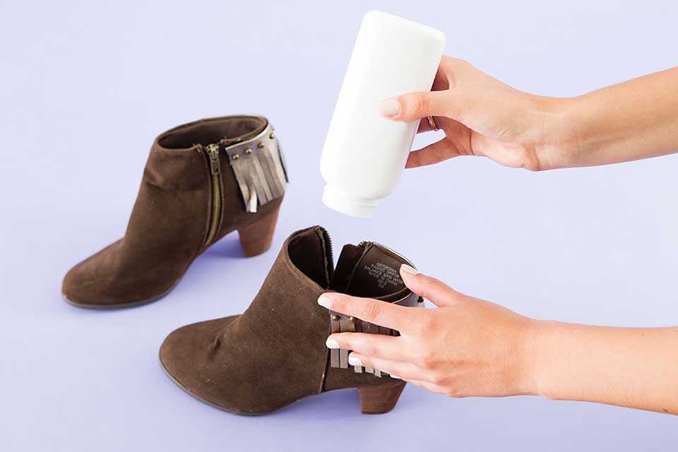 - Спреи перед нанесением рекомендуется встряхнуть и распылить на внутреннюю поверхность обуви. Надевать только после высыхания.