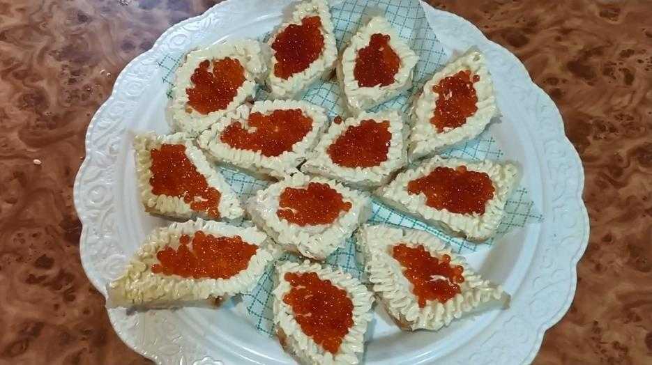 Закуска с красной икрой на тостах «Сердечки»