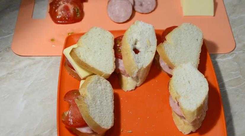 Горячие бутерброды с колбасой и сыром на сковороде