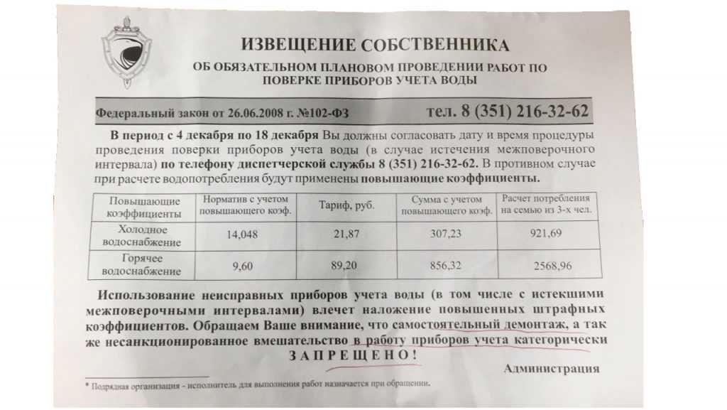 Если есть необходимость или желание произвести замену самостоятельно или с помощью работника сторонней фирмы, обязательно наличие письменного разрешения от УК. После установки нового прибора сотрудник компании приглашается для проведения опломбировки.