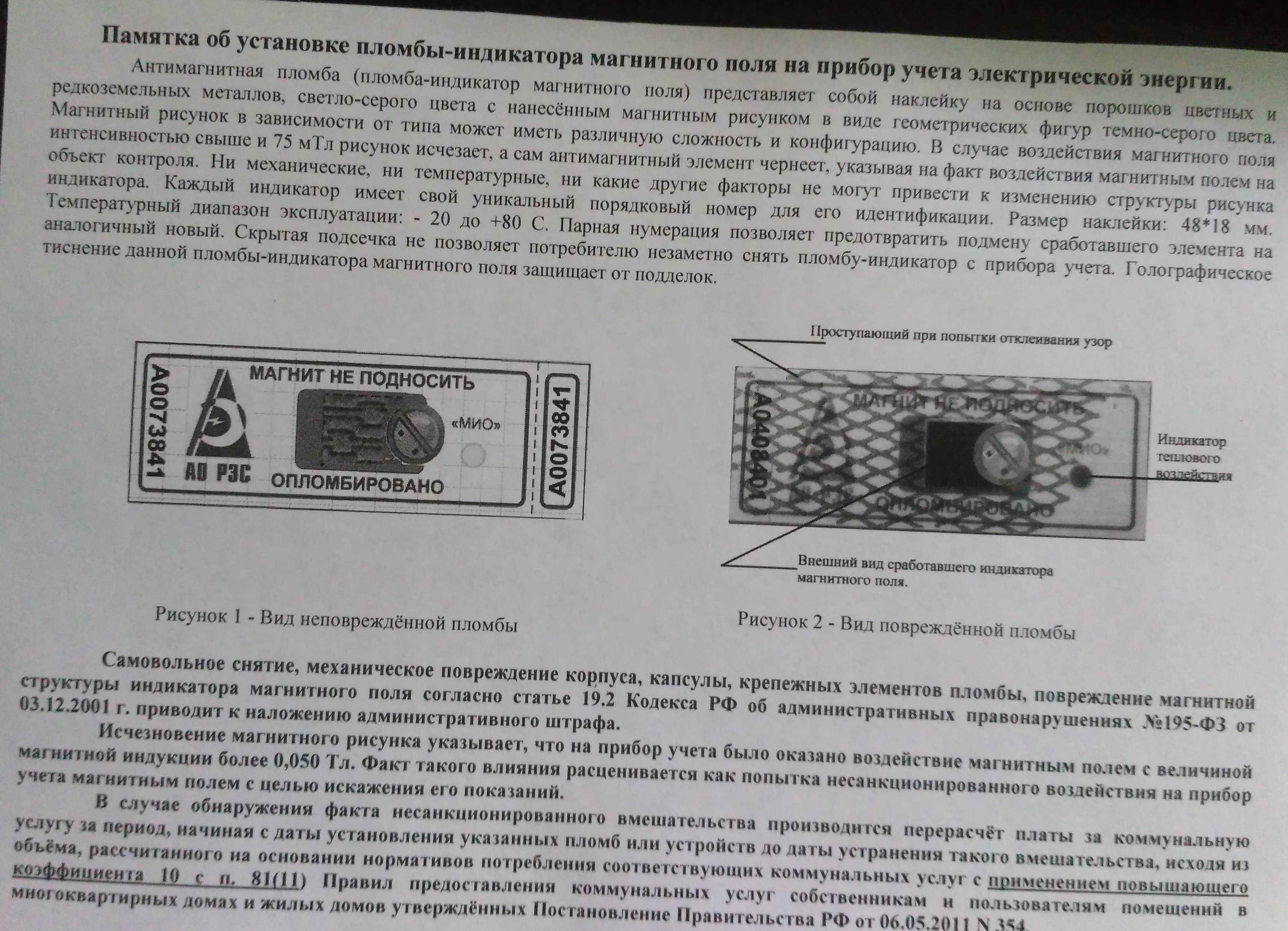 — лишний повод для волнений потребителя. Неплохо взять за привычку изредка хотя бы посматривать за её состоянием, потому, как и отставание её краёв от мест прилегания к прибору, и любое изменение цвета может дать повод для придирок. А вдруг, вы пытались её отклеить? Это вмешательство в конструктив. Или, может, вы экспериментировали с магнитом для остановки счётчика? Вот вам и безучётное потребление вместе с вмешательством в работу прибора.
