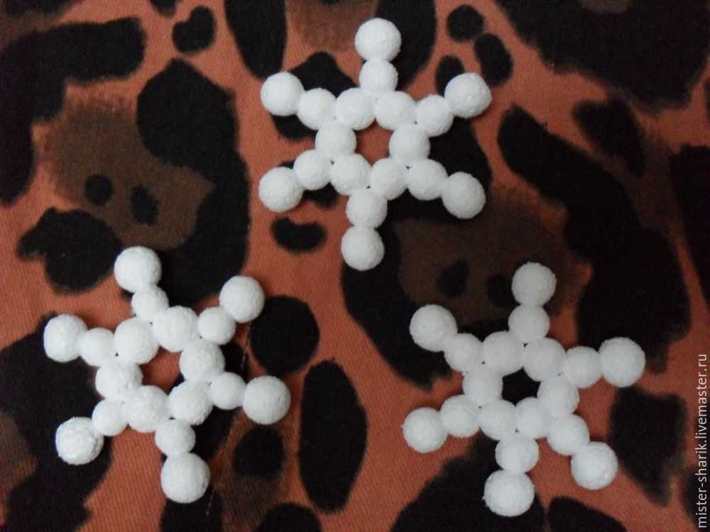 Снежинки. Шарики соединяем горячим клеем (пистолетом) или клеем ПВА.