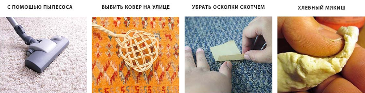 Как убрать осколки стекла с ковра