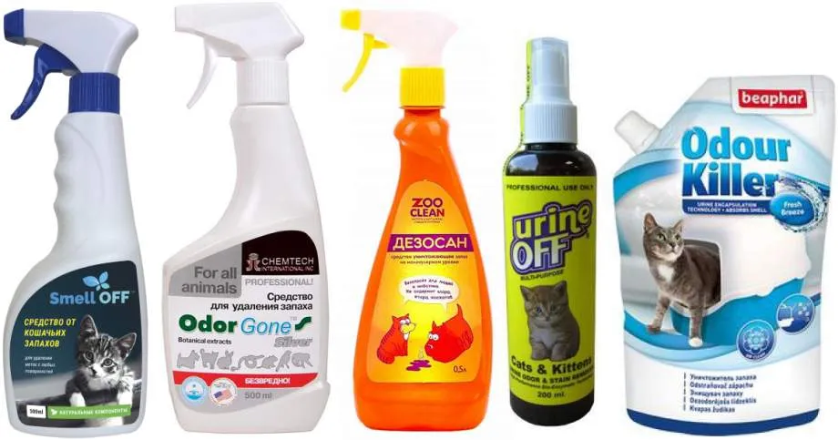Специальные средства для удаления запаха и следов кошачьей мочи
