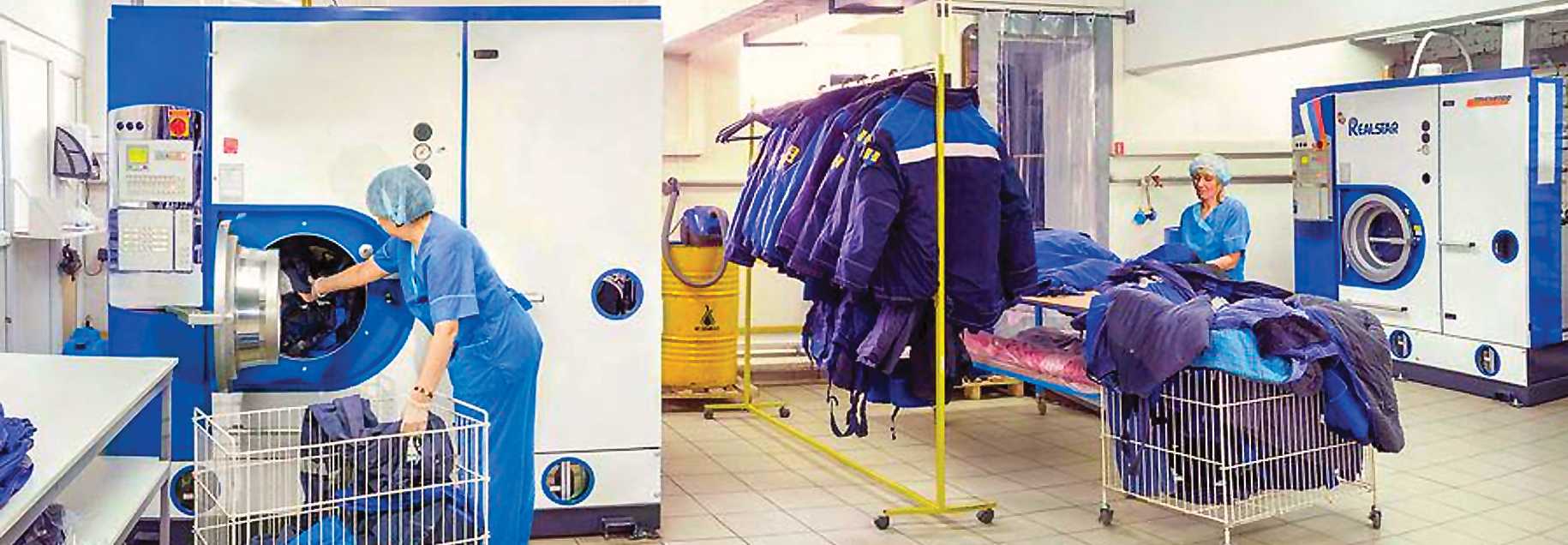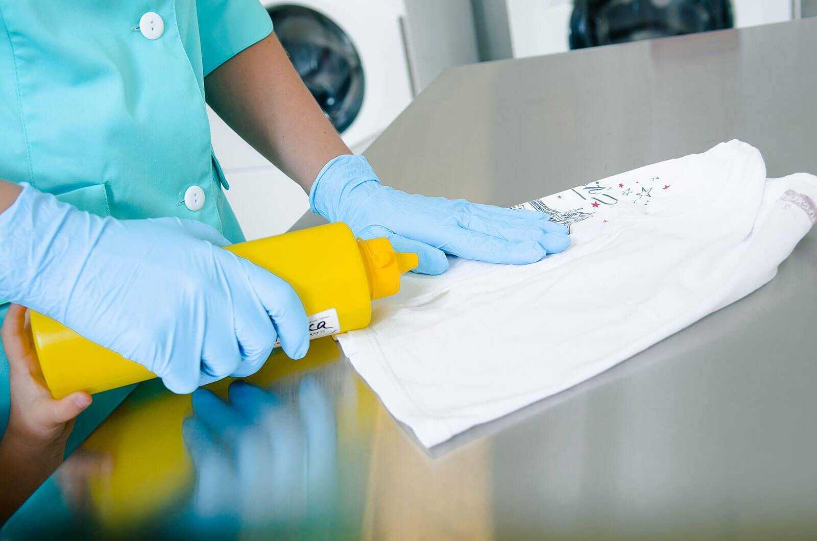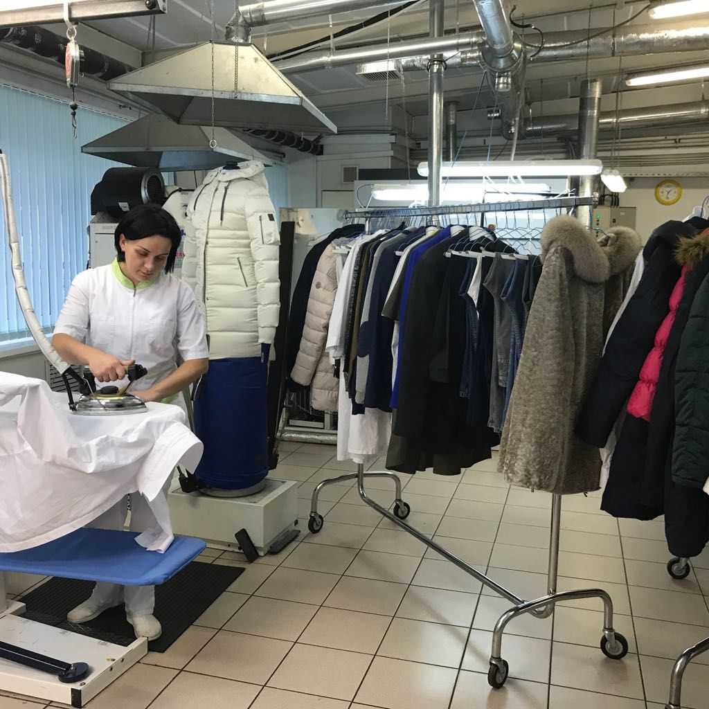 - Предварительная зачистка специфических пятен и сильно загрязненных участков с использованием пятновыводных станков, столов, снабженных пистолетами, щетками, вытяжкой.