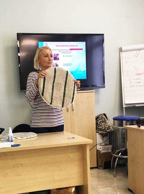 Обучающая программа от итальянской компании «Киттер». Специалист говорил про итальянские стандарты чистки. Но ничего нового он не открыл — хорошие мастера в России давно их соблюдают. Например, рассказал о том, что нужно делать тест на остаток химии на покрытии после чистки. Если, допустим, на диване осталась химия, то нужно еще раз нейтрализовать щелочи кислотными средствами