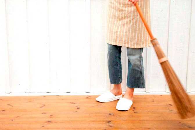 - Подметать всегда нужно от окна или угла (в старину «красного») и в сторону двери.