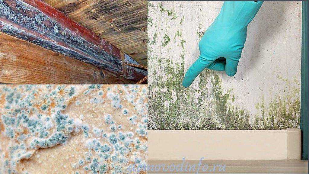 - Влияние сырости с подвала или плохой изоляции на крыше. Для жителей первых, последних этажей многоквартирных домов известна проблема плесени. Все потому, что протекающие перекрытия, крыша, сырые подвалы — это идеальная среда (влажная и темная) для размножения плесневых грибов.