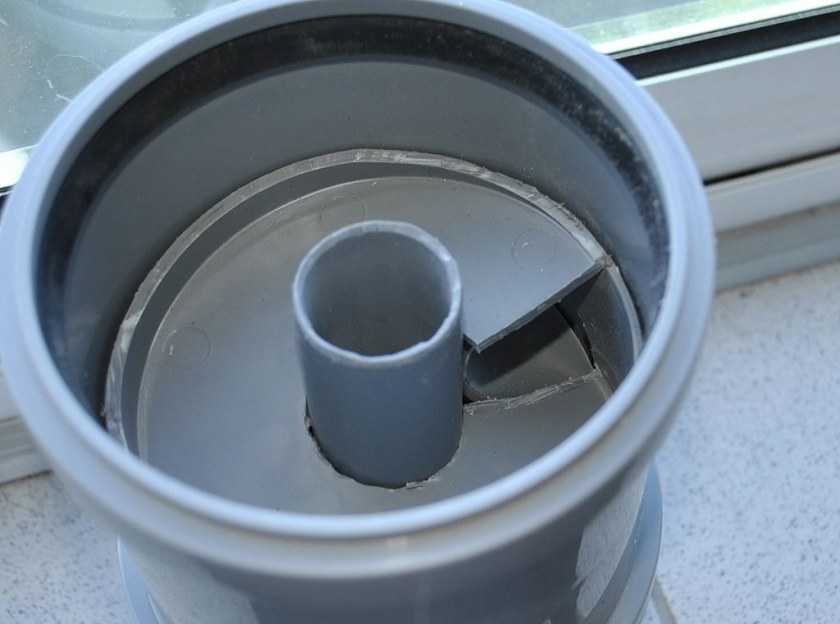 В эти отверстия вставляются два канализационных отвода. Чтобы они надежно держались и не было дополнительного подсоса воздуха, их лучше приклеить.