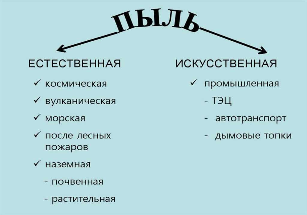Исследуя проект, откуда берётся пыль и какую опасность она несёт, можно констатировать, что основными ее источниками являются: