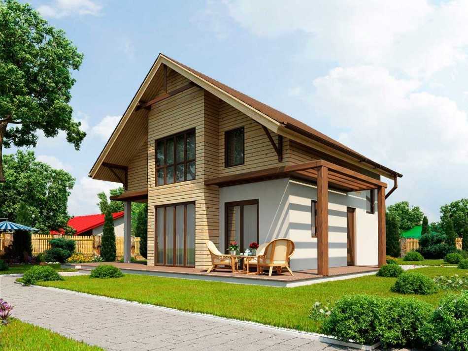 Двухэтажный коттедж каркасного типа с небольшой площадью