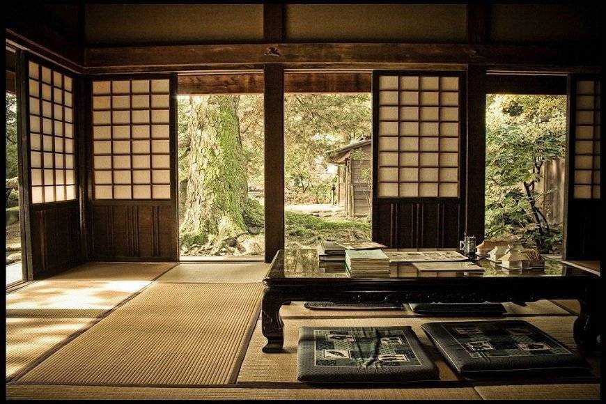 Татами – это толстые квадратные маты. Каждый мат – это три сшитых вместе соломенные циновки. Золотистые, приятно пахнущие татами полностью покрывают полы, на них никогда не наступают обутыми ногами. Впрочем, в современном европейском доме можно успешно заменить татами подобранными в цвет ковровыми натуральными изделиями, положить циновки или оставить полы без декора.