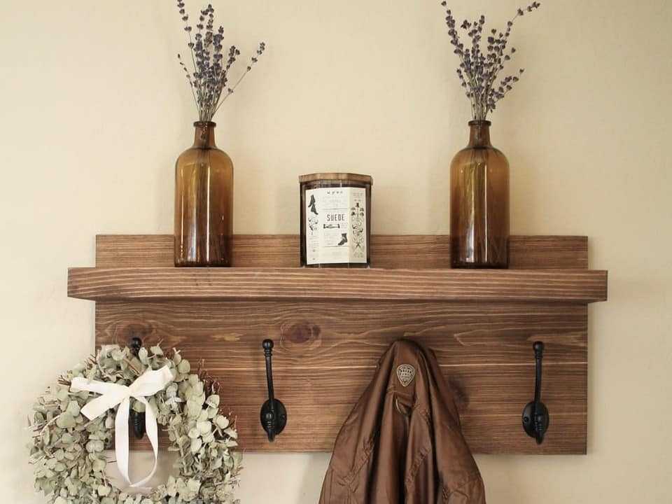 Попробуйте смастерить вешалку для верхней одежды в прихожую. В качестве материала подойдет дерево, ДСП, фанера – все зависит от бюджета и конкретной модели. Изделия из металла намного сложнее сделать в домашних условиях.