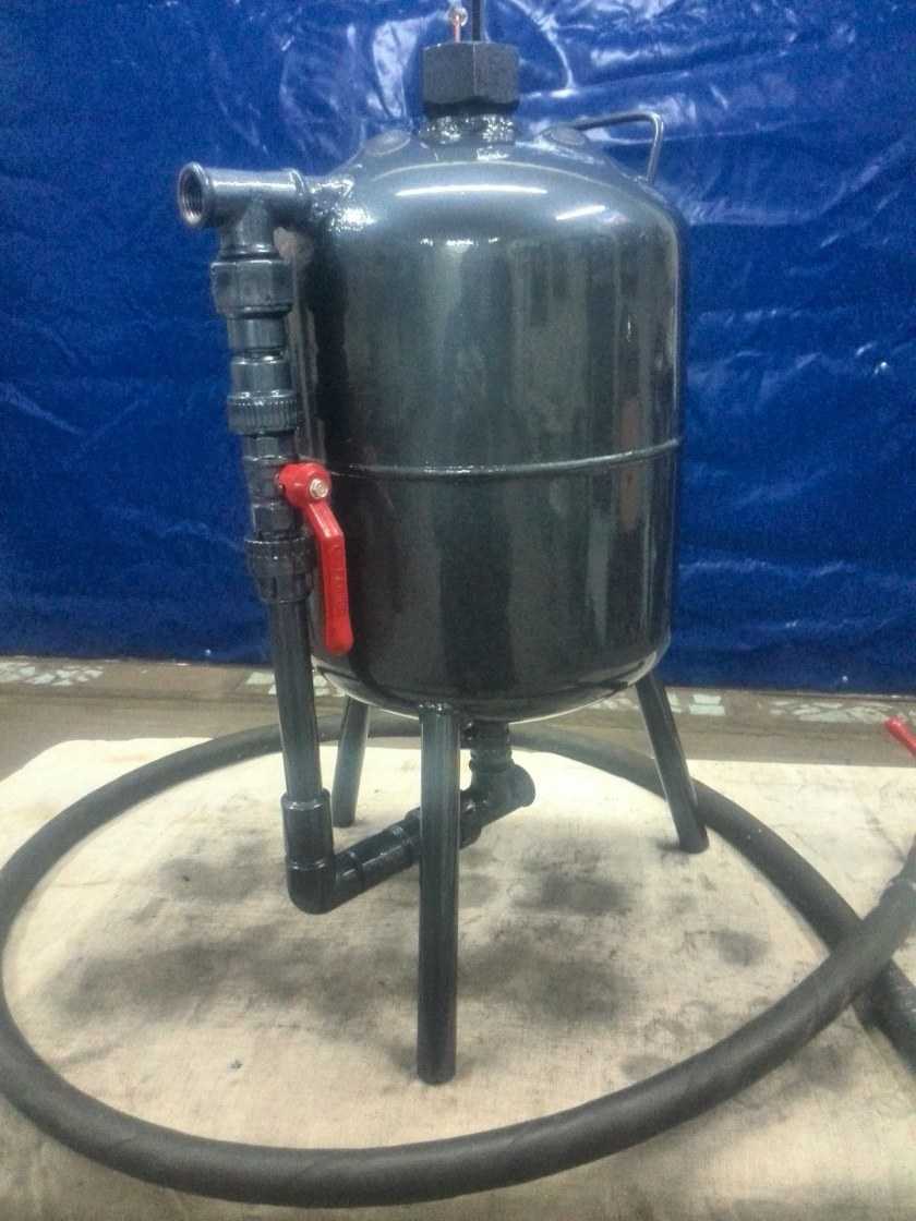 Вот так выглядит наш пескоструйный аппарат напорного типа. Конечно, внешний вид может отличаться, но суть от этого не меняется. |