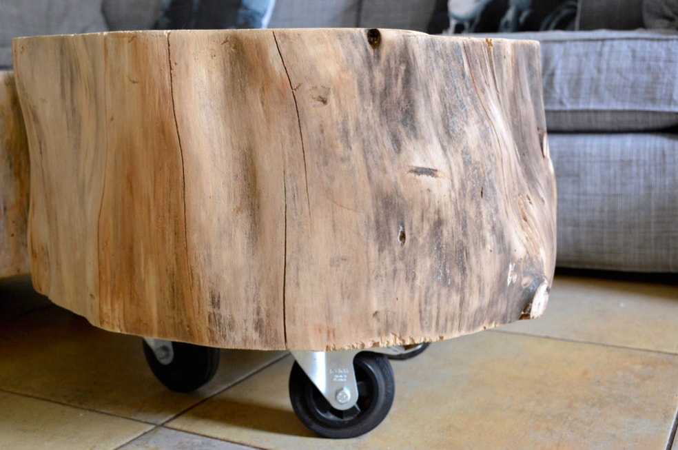 Столик из поленьев является идеальным воплощением представления любителей природы о том, какой должна быть мебель в доме. Возможно, вы возмутитесь, сказав, что никакой любитель природы не срубил бы дерево ради того, чтобы сделать из него стол, но мы спешим успокоить нашего читателя: такие столики можно делать из поваленных естественным образом деревьев, от этого их качество не страдает.