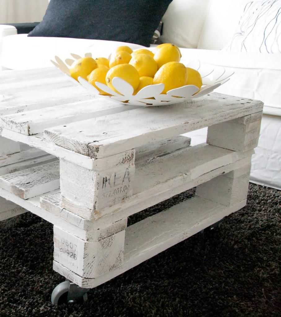 Такой столик хорошо впишется в современный интерьер. Материалом могут выступать как новые поддоны, так и бывшие в использовании. Главное условие – это отсутствие признаков гниения древесины и сильных повреждений. Изготовление такого стола не займёт много времени: