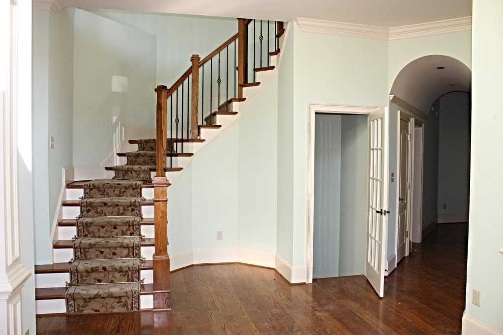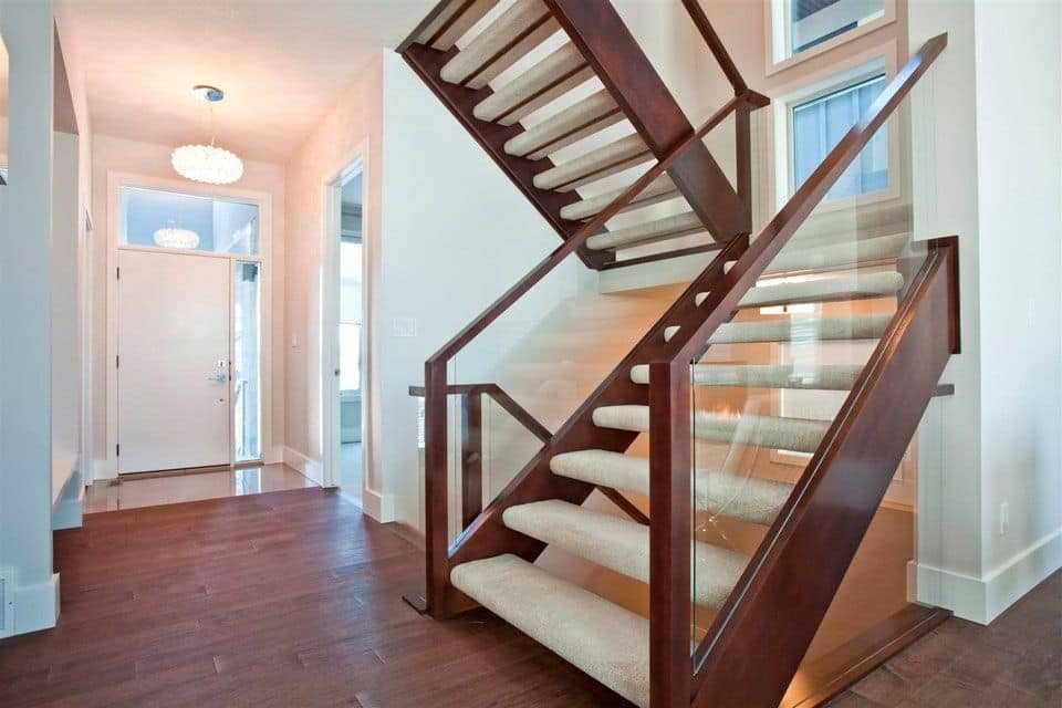 Поскольку лестница на второй этаж служит одним из ключевых элементов интерьера, ее форма и цветовое решение выполняется в определенном стиле, поддерживающем общий антураж.