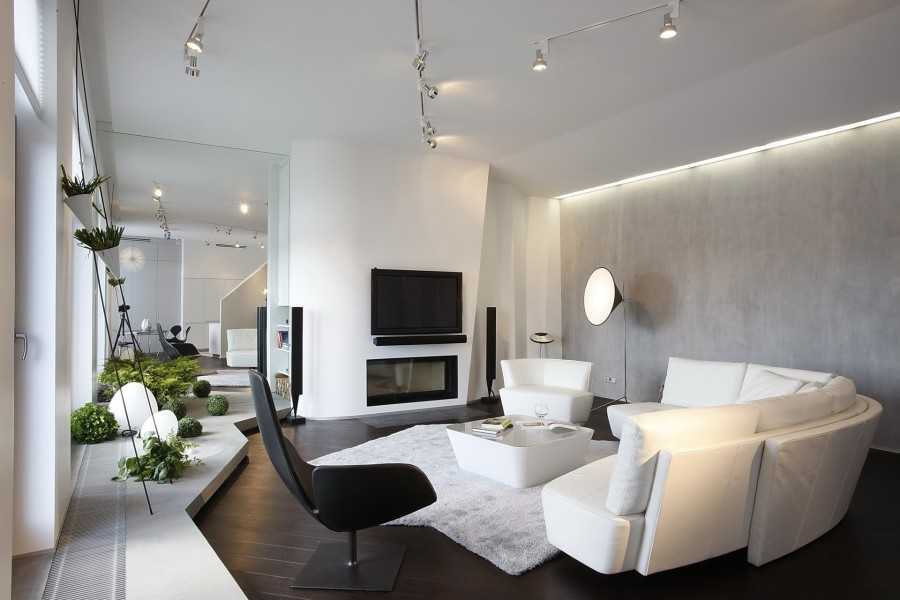- Стены выполнены в едином цвете или скомбинированы с одним дополнительным, как правило, стены оформляют в белом, сером, черном или молочном цвете.