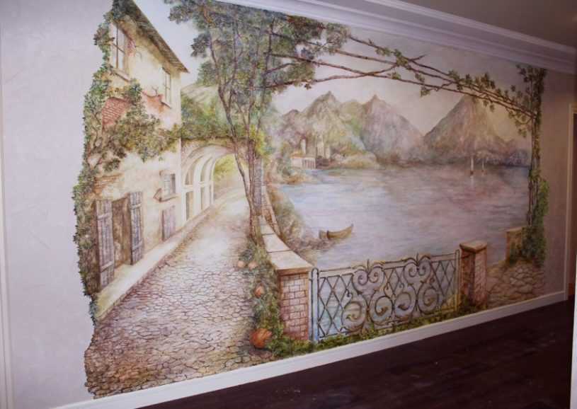 Использование такой техники предполагает покраску стен масляными красками или расплавленным воском поверх сухой штукатурки. Еще одна похожая техника рисования — изображение выполняется на холсте, а затем приклеивается к стене.