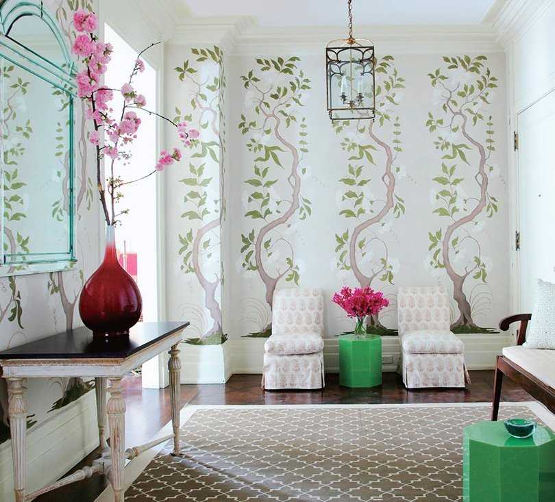 Самые универсальные принты для росписи стен это: клетка виши или тартан, полосы, ромбы, растительные мотивы, марокканские узоры (на фото ниже).