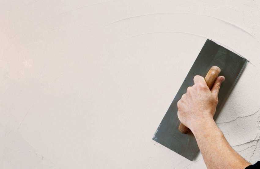 Дождитесь загустения материала (это займет около получаса), затем легкими плавными движениями проведите по стене (потолку) теркой, чтобы выровнять штукатурку и создать узор.