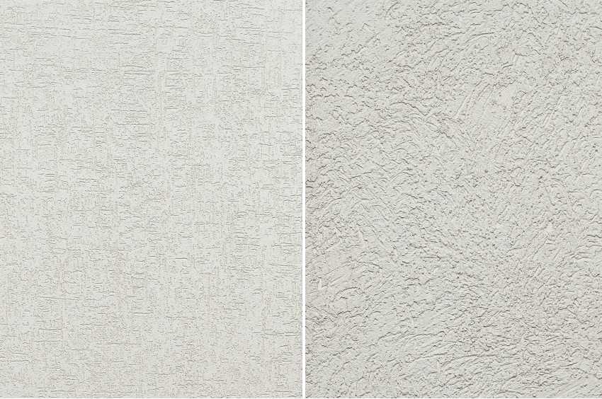 Самые мелкозернистые штукатурки с размером фракций от 0,8 до 1,5 мм подходят для внутреннего декора помещений, а материал с крупными фракциями от 2 до 3,5 мм используется для штукатурки фасадов. Фото примеры наглядно показывают полученный фактурный эффект.