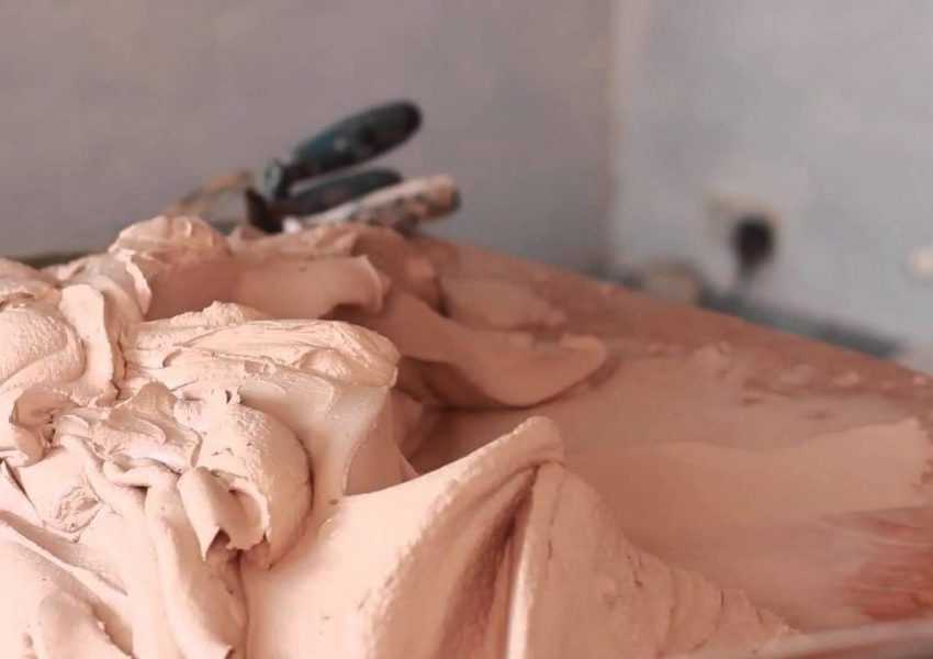 Фактура «короед» создается с помощью нанесения нескольких слоев штукатурки и специального инструмента — пластмассовой шлифовальной терки