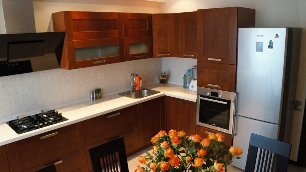 При этом подумайте об эргономике: кухня должна обеспечивать максимальный комфорт и эффективность действий. В идеале, раковина, плита и холодильник должны образовывать собой «рабочий треугольник» – их расстояние друг от друга не должно превышать длину вытянутой руки более чем в 2 раза.