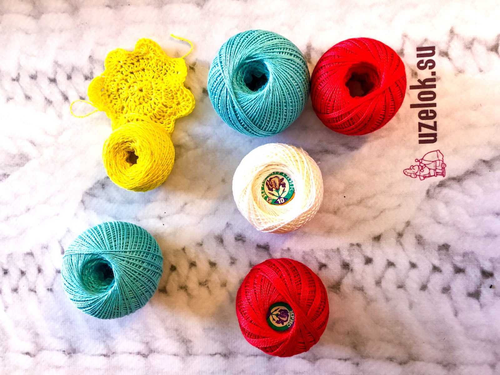 Небольшие диаметры предназначены для тонкой пряжи. Самая распространенная — ирис (еще с советских времен). Из нее вяжут салфетки, детскую одежду и множество летних вещей.